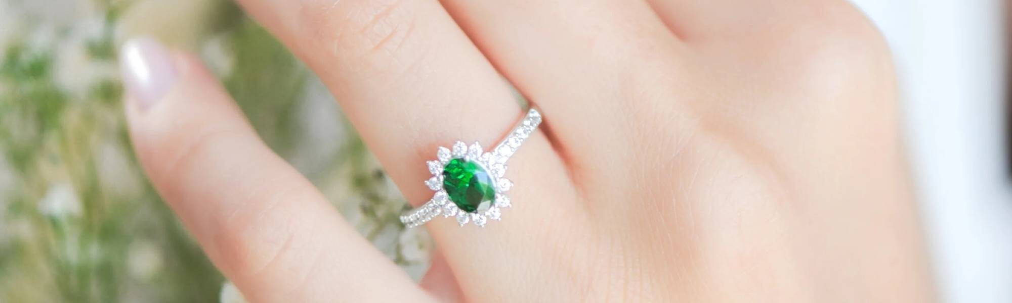 Solitaire Elsa Lee en argent rhodié et oxydes de zirconium taille émeraude