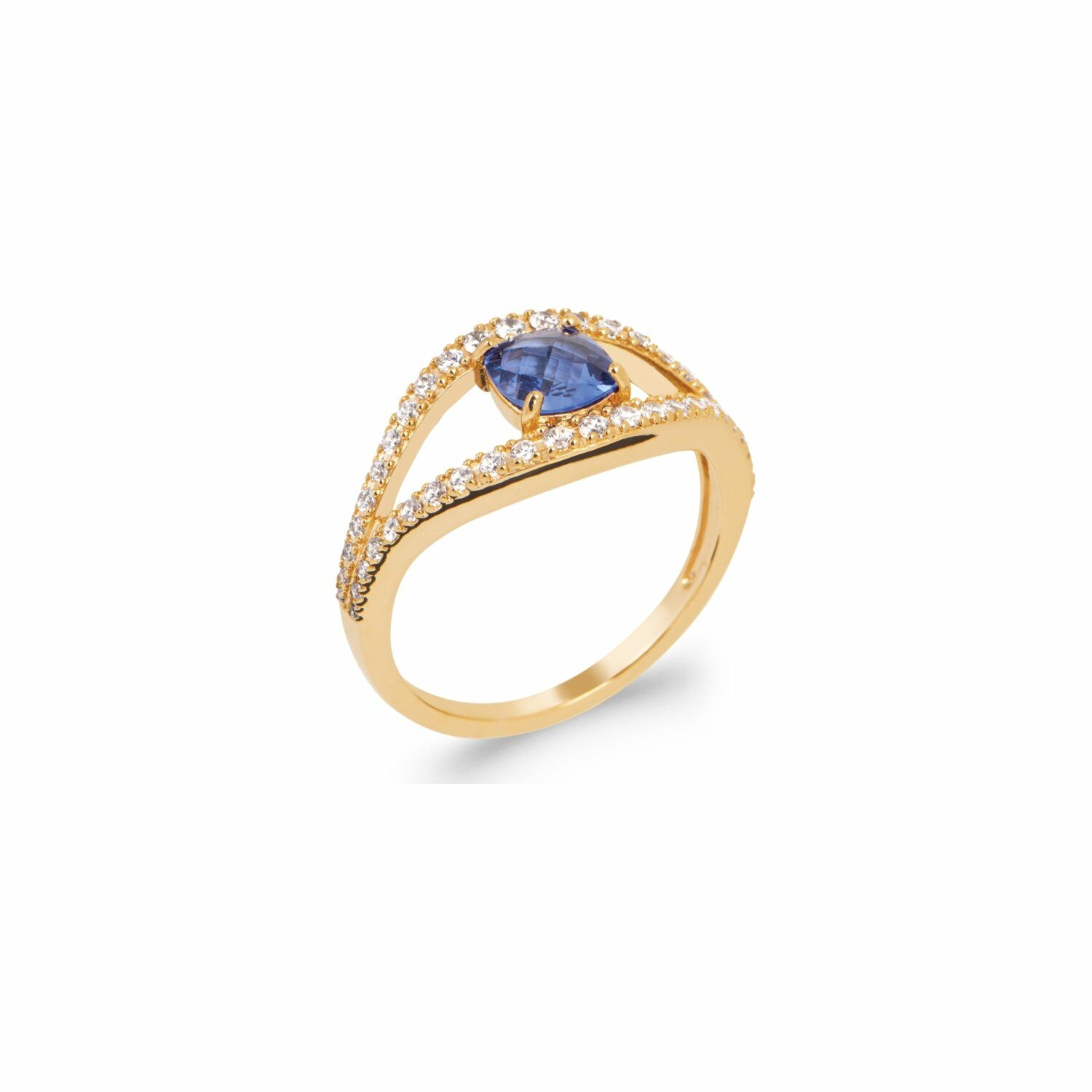 Bague en plaqué or, oxydes de zirconium et pierre synthétique