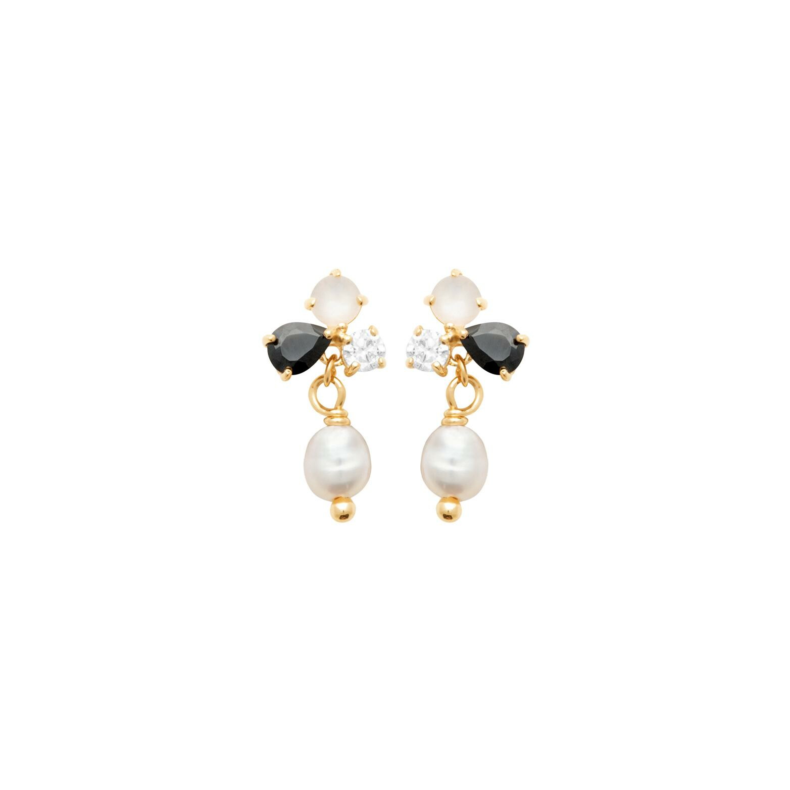 Boucles d'oreille pendantes en plaqué or, oxyde de zirconium et perle de culture