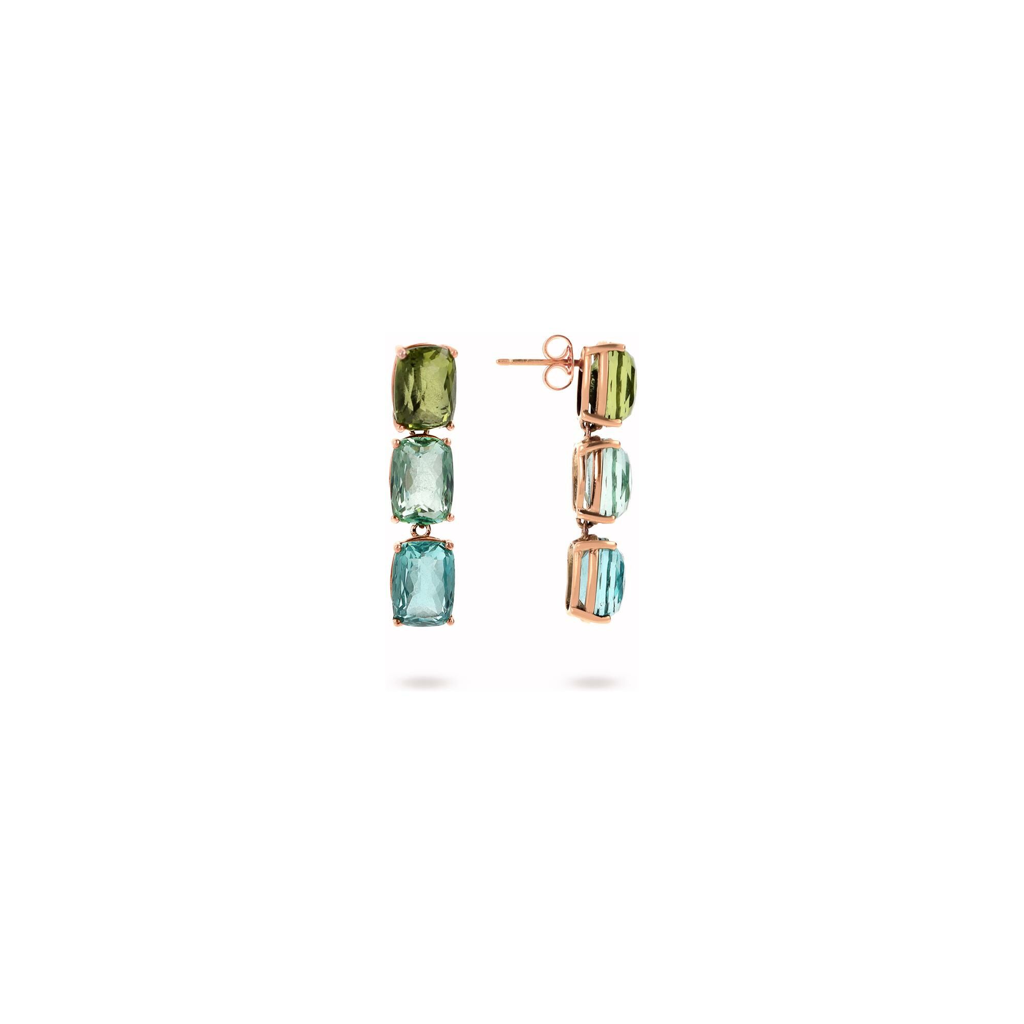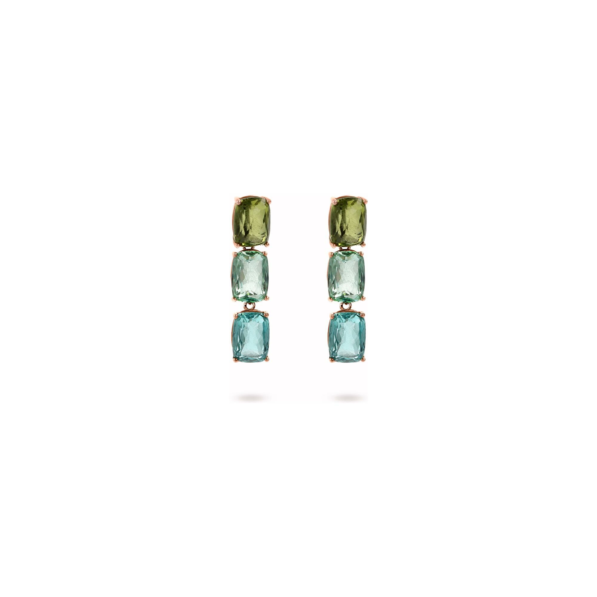 Boucles d'oreilles Bronzallure Felicia en métal doré rose à l'or fin 18 carats et pierres de couleurs