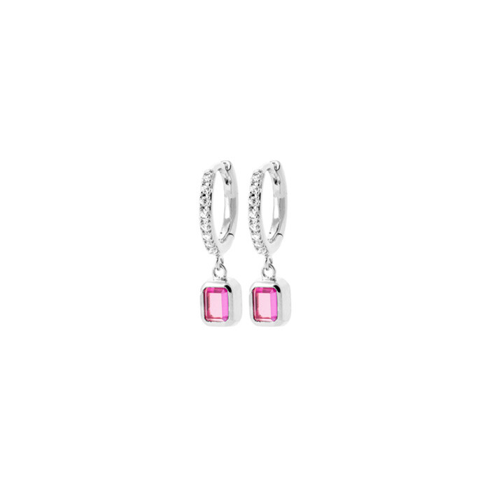 Boucles d'oreilles créoles en argent rhodié, oxydes de zirconium et pierres synthétiques