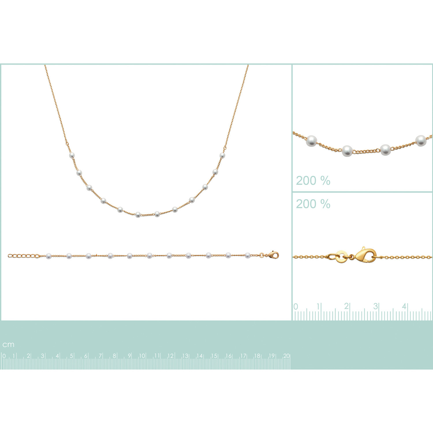 Collier en plaqué or et perles d'imitation, 45cm