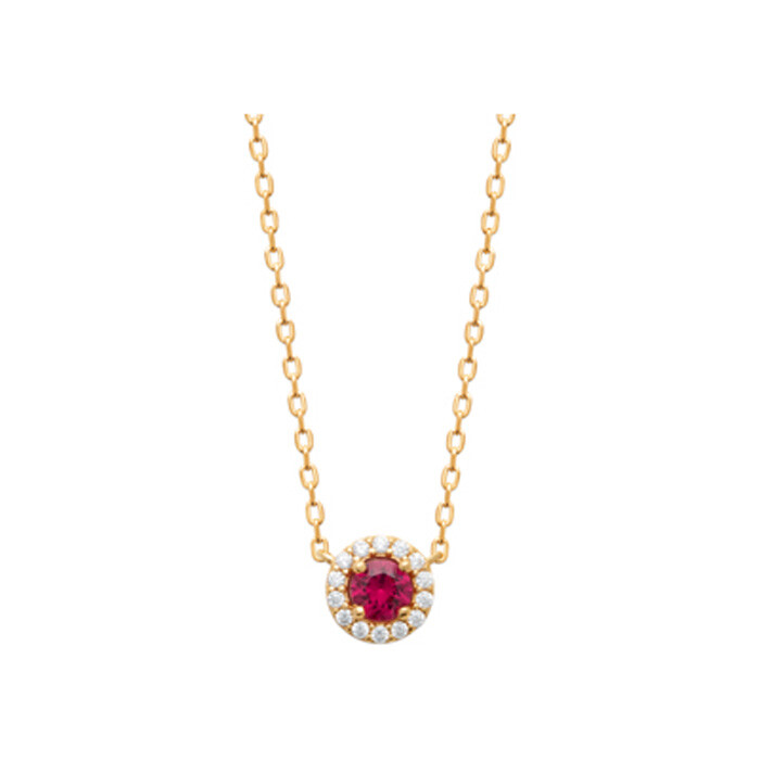 Collier en plaqué or, oxydes de zirconium et pierre synthétique, 45cm