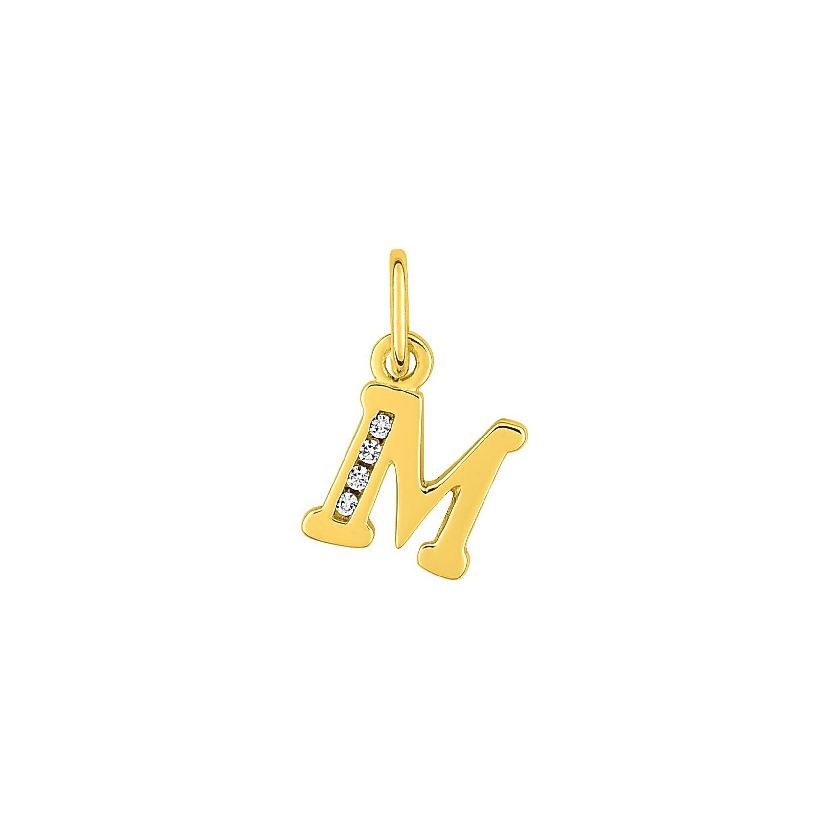Pendentif initiale lettre M en plaqué or et oxyde de zirconium